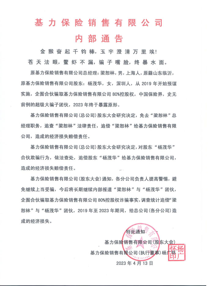 内部通告梁恕林、杨茂华